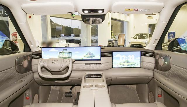 新车的前脸使用了大面积封闭式的造型,主要是突出的灯组的设计,灯组为分体式结构,上部是贯穿式U形灯带,下部的灯组是门形的轮廓,内部是矩阵式的光源结构,有着不错的精致感。车顶前部带有激光雷达,两侧还提供了一体式探射灯。