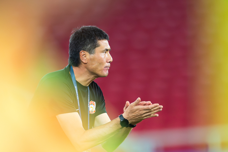 2025年7月18日,青岛西海岸队主教练邵佳一在场边指挥。 当日,在湖北武汉举行的2025赛季中国足球超级联赛第17轮比赛中,武汉三镇队主场1比1战平青岛西海岸队。\n 新华社记者 肖艺九 摄